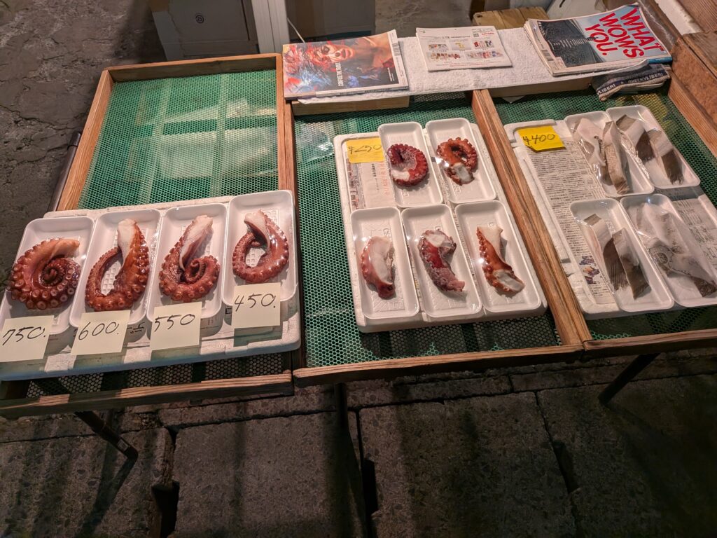 少し早めに中へ入れてもらえたが、注文はまだ。 この待ち時間も、朝市らしくて嫌いじゃない。