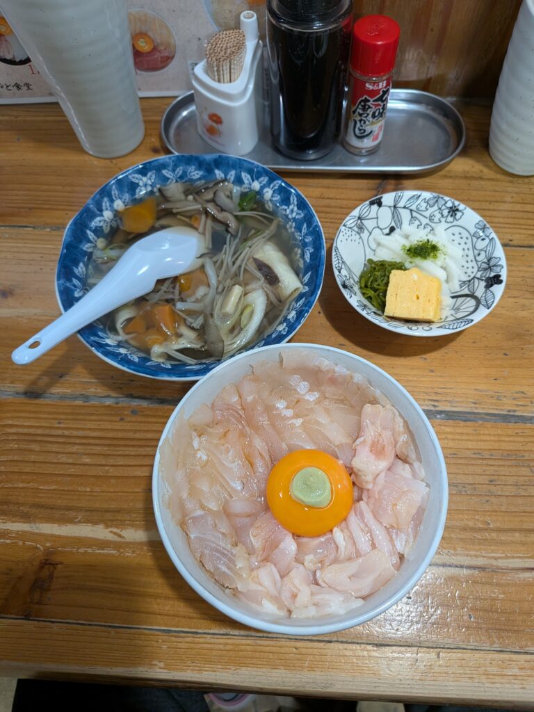 ヒラメの漬けは、タレがとにかく絶妙。 濃すぎず、薄すぎず、出汁の効き方が完璧。 朝からでもスッと入ってくる味だった。