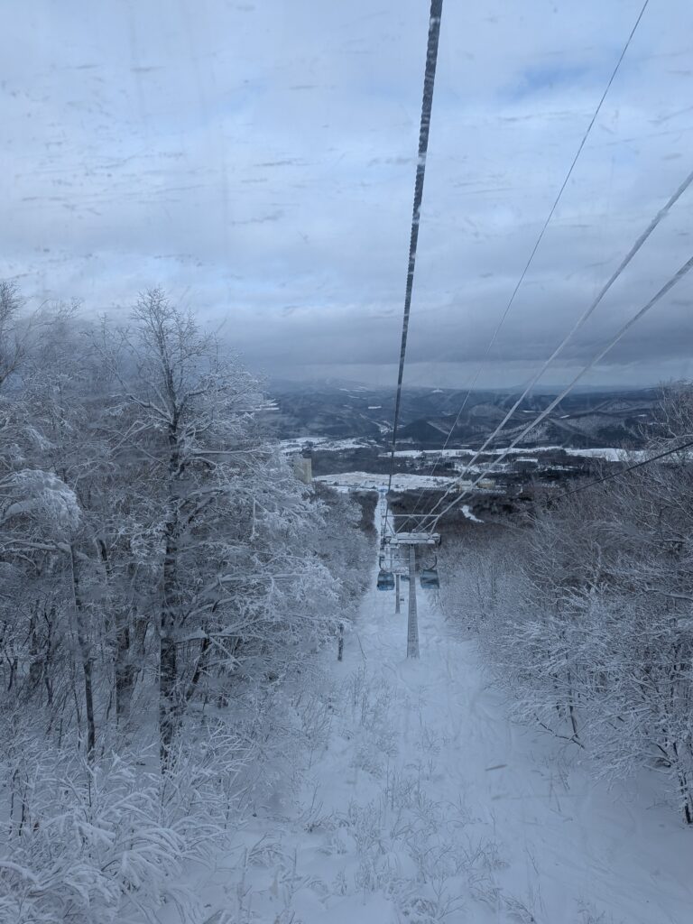 登っていくにつれて、景色は完全に冬山。 「スキー場に来たな」という空気に変わっていく。