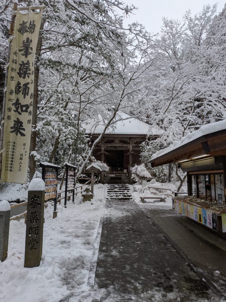 金色堂の内部は撮影禁止。 外観は雪に包まれ、まさに“雪の金色堂”といった雰囲気だった。 天候も相まって、静かで厳かな空気を感じられた。