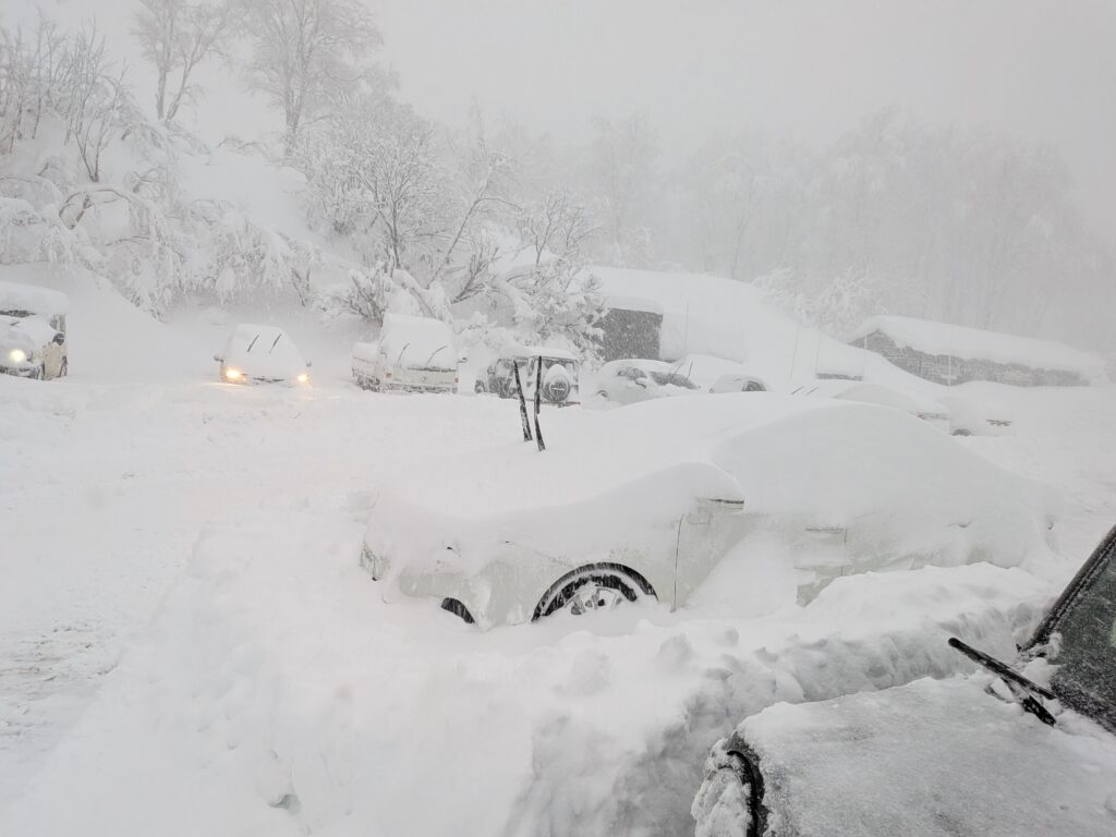 ……したものの、雪が多すぎて駐車場に入れない。