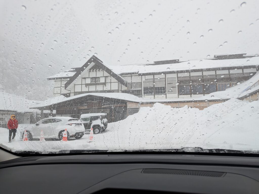 ワイパーを立て、雪対策をしてから建物の中へ。