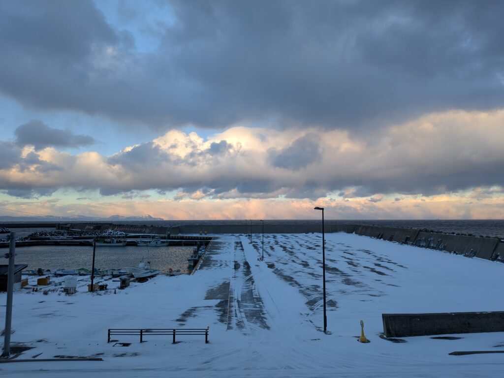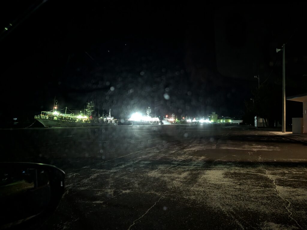 寝る場所は漁港近くのコンビニ。